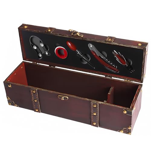 - 5 tlg Weinzubehör Geschenkset Dieses Set enthält keine Weinflasche Dieses Set von Sommelier Werkzeugen enthält 1 antike Weinkiste 1Weinstopfen 1 Flaschenöffner 1 Ausgießgerät 1 Aluminiumfolienschneider und 1 Tropfring Es enthält alle Weinzubehör die Sie benötigen so dass Sie die Flasche leicht öffnen und den Wein in einer eleganten Haltung gießen können